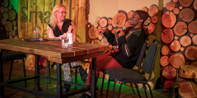 Lily Sturt-Bolshaw (left) and multi-disciplinary artist and music creative NikNak at Come Play With Me’s I Know A Place seminar