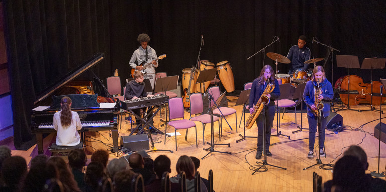 ‘What a fantastic performance, showcasing the excellent partnership work that is happening between the HE Jazz Department, Leeds Junior Conservatoire, Yorkshire Young Musicians, our partner schools and JazzLeeds. This evening celebrated the collaboration between musicians at different stages of their musical careers. A huge thank you to all the staff, alumni, students and young people who made this happen.’