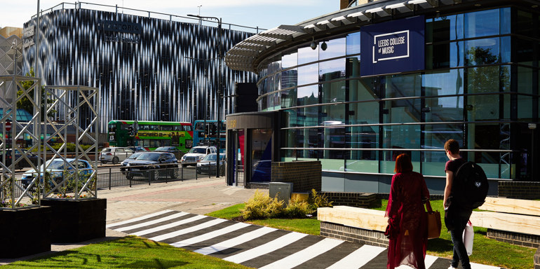 The diagonal path which runs through the centre of the square linking the main LCoM campus and Music Library, also nods to the musical heritage of LCoM – with a zebra crossing design reminiscent of the Beatles’ Abbey Road album cover.
