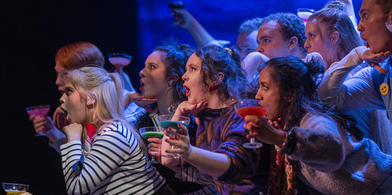 Final year BA Musical Theatre students in Merrily We Roll Along (2022) - Photo credit: Ian Hodgson
