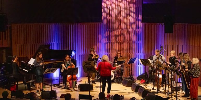 In addition to performing with her quartet on the ‘Welcome to Leeds’ Stage, second year Jazz student Olivia Cuttill was also involved in the ‘Beyond the Secret’ initiative. As part of INTERCHANGE’s mission to champion and mentor the nation’s most innovative women composers and improvisers, Issie Barratt and her band offered a unique, free professional development initiative for female composers who wanted to gain more experience in writing for large ensembles.