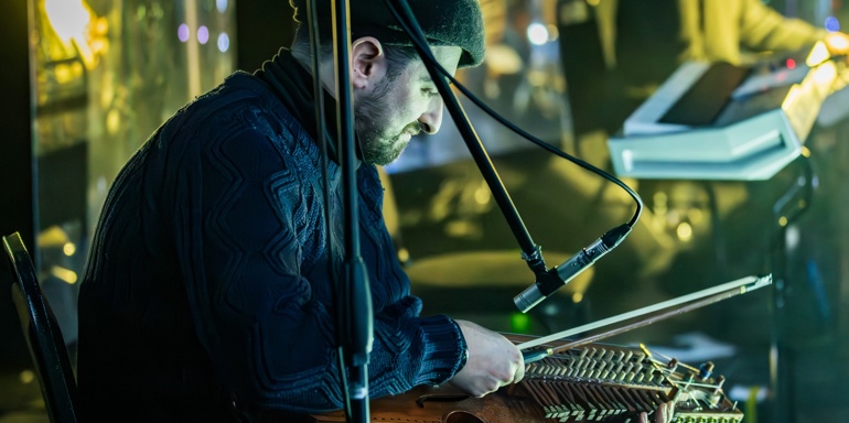 In the recent years, Rob has co-directed Sheffield-based minimalist improvising ensemble Emergence Collective, which features a mixture of medieval and modern instruments. The group have performed widely, released their first album Fly Tower (2023) featuring 10 improvising musicians, and led pattern-based improvisation workshops. Rob also performs in free-folk improv duo Resonant Bodies – this group had music released on Betwixt and Between Tapes in September 2024. Rob has written electro-acoustic soundtracks for theatre companies including Knaïve Theatre (War With The Newts: 2018), Northern Broadsides (As You Like It: 2022), Mafwa Theatre (The Journey: 2023) and Impermanence (Ballet of the Nations: 2018 / Baal: 2019). In April 2024, Rob performed his new work Flatlands, for nyckelharpa and electronics, at Sonorities Festival.